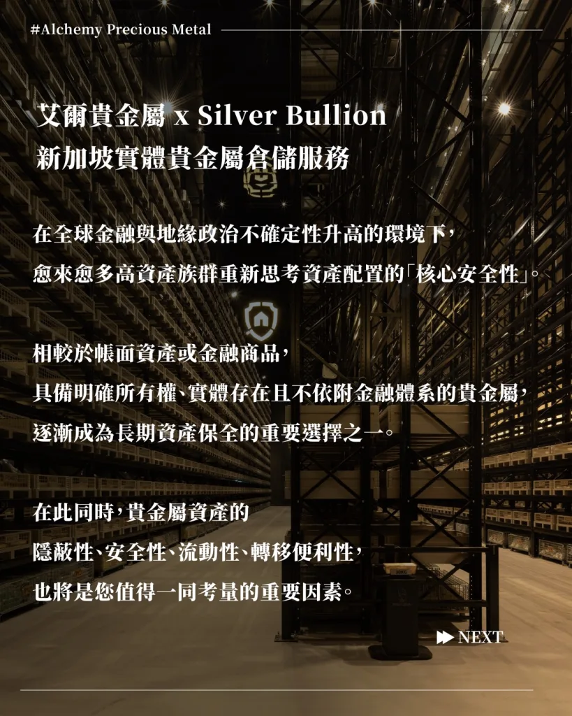 艾爾貴金屬 × Silver Bullion新加坡實體貴金屬倉儲服務