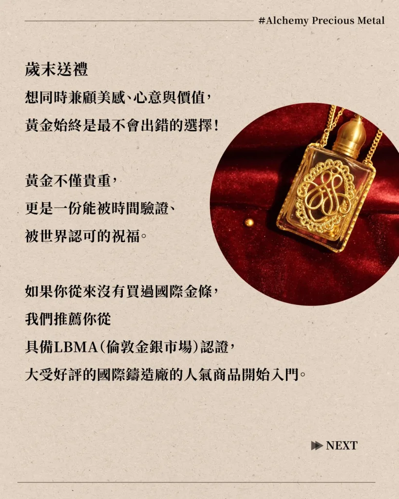 歲末送禮,想同時兼顧美感、心意與價值,黃金始終是最不會出錯的選擇!不僅貴重,更是一份能被時間驗證、被世界認可的祝福。