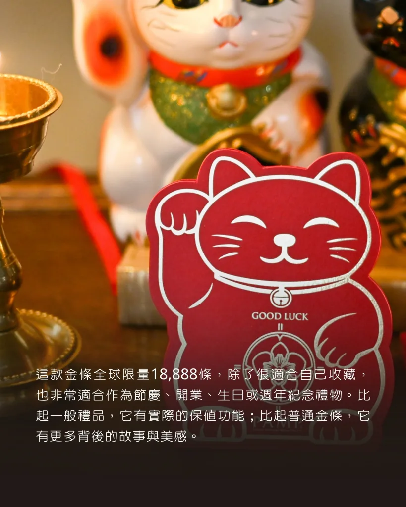 這款金條全球限量18,888條,除了很適合自己收藏,也非常適合作為節慶、開業、生日或週年紀念禮物。比起一般禮品,它有實際的保值功能;比起普通金條,它有更多背後的故事與美感。