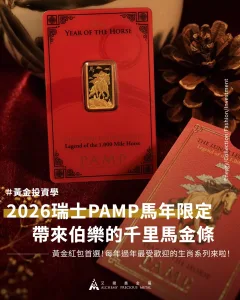 2026 瑞士 PAMP千里馬金條來囉!